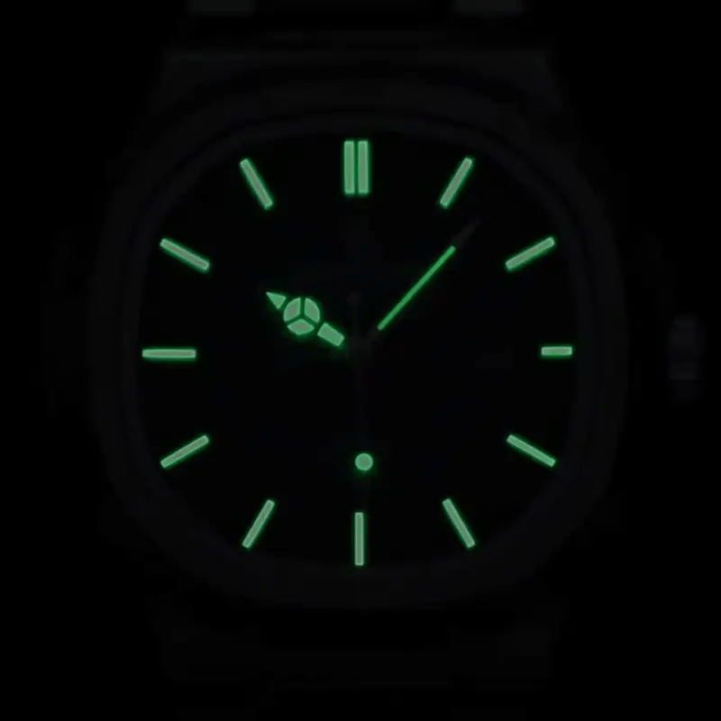 Está equipado con agujas y marcadores luminiscentes que absorben la luz durante el día y la liberan en la oscuridad. Esto significa que, aunque estés en un lugar con poca iluminación, la hora siempre se mantiene clara y fácil de leer.